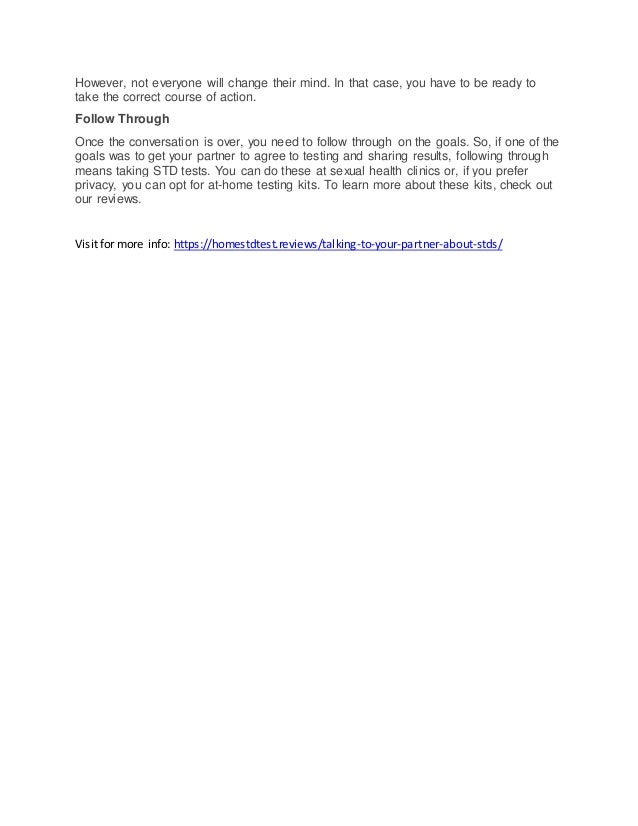 While you may feel awkward or nervous about telling them, it is important that they know before you have sex. Many stds are asymptomatic, and your partner may have an std without realizing it. It might seem scary to tell your partner you have an std, but we've tips on how to make the std conversation easier. For some sexually transmitted diseases, the news may come as a real shock, disappointment or surprise to your partner. Telling your partner you've been diagnosed may seem terrifying, but sharing the news honestly, directly and clearly will start the conversation off it can be a healthy way to bond with your partner;